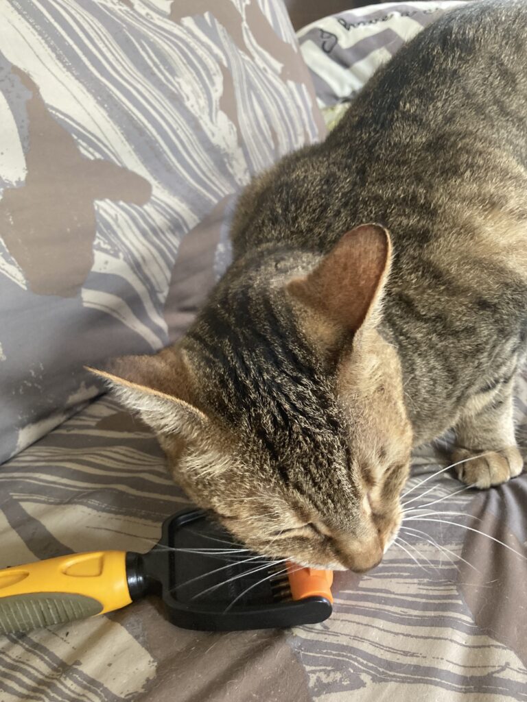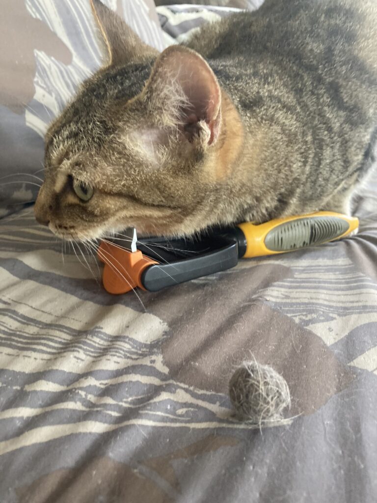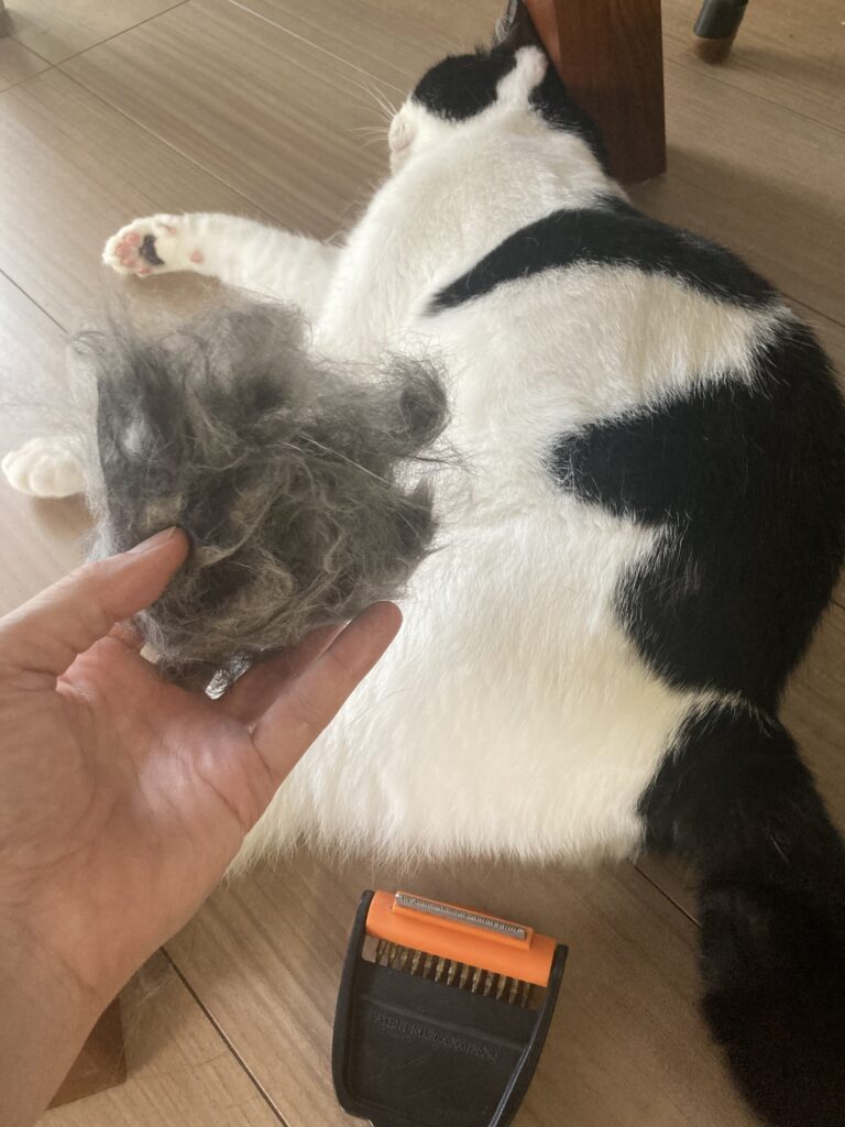 グルーミング過多なので、ブラッシングしてもあまり毛が取れません。