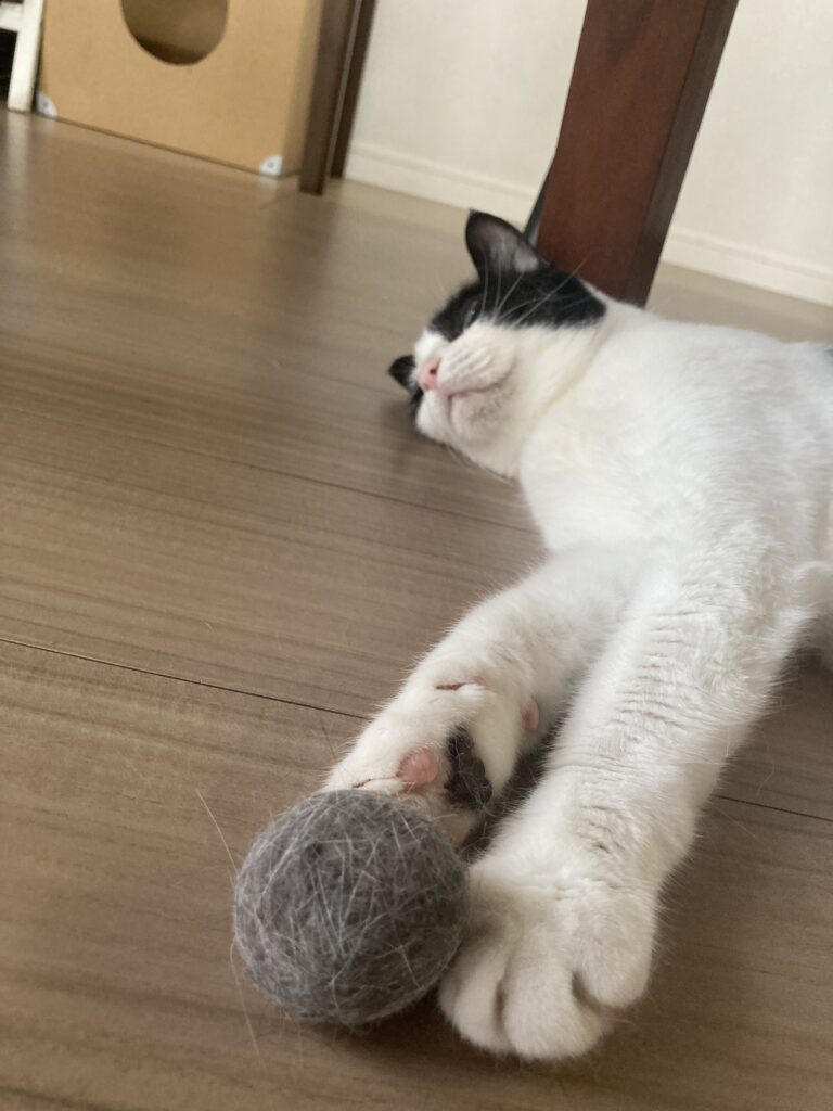 たくちゃんも自分でグルーミングをよくするので、自分ボールは中くらい。