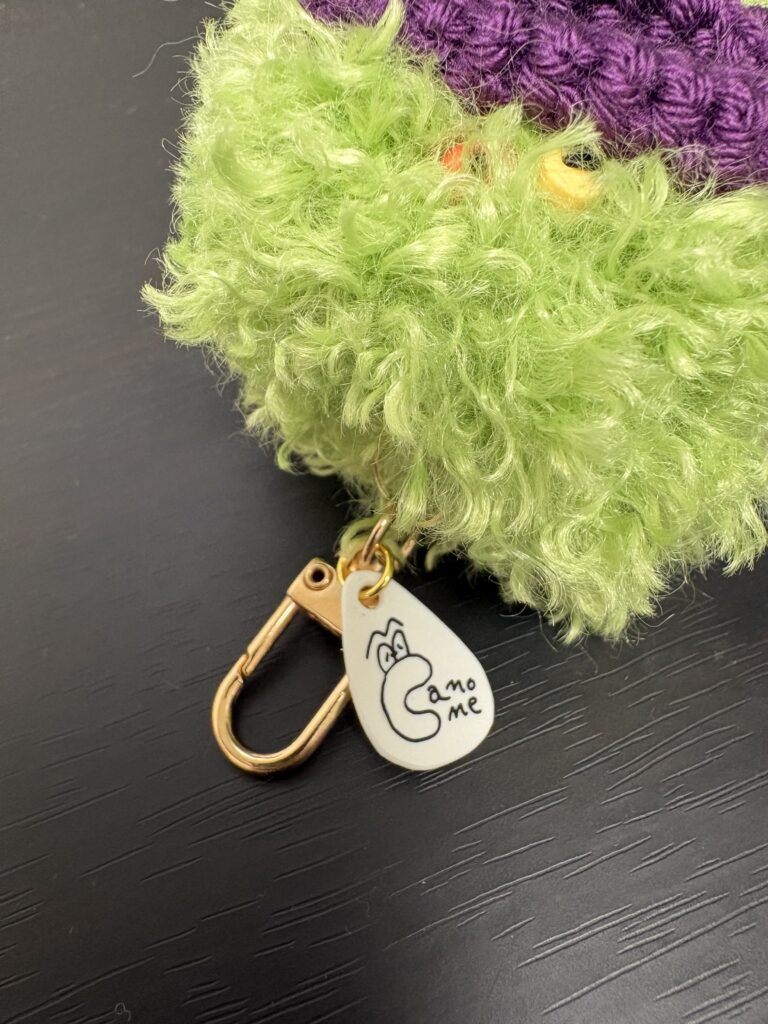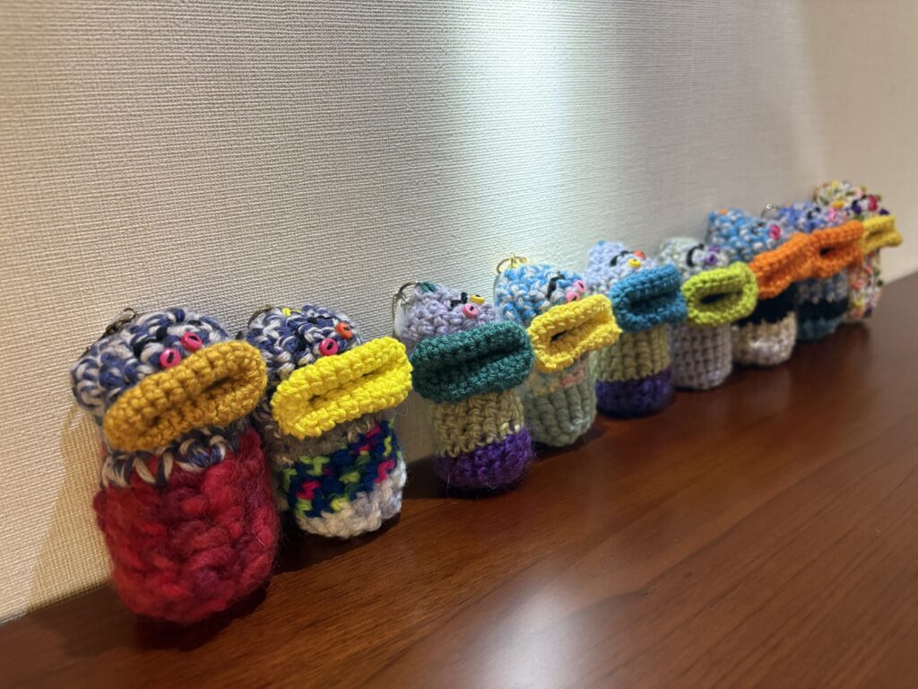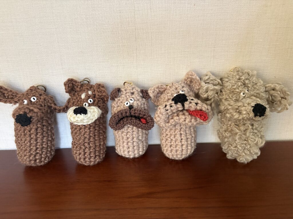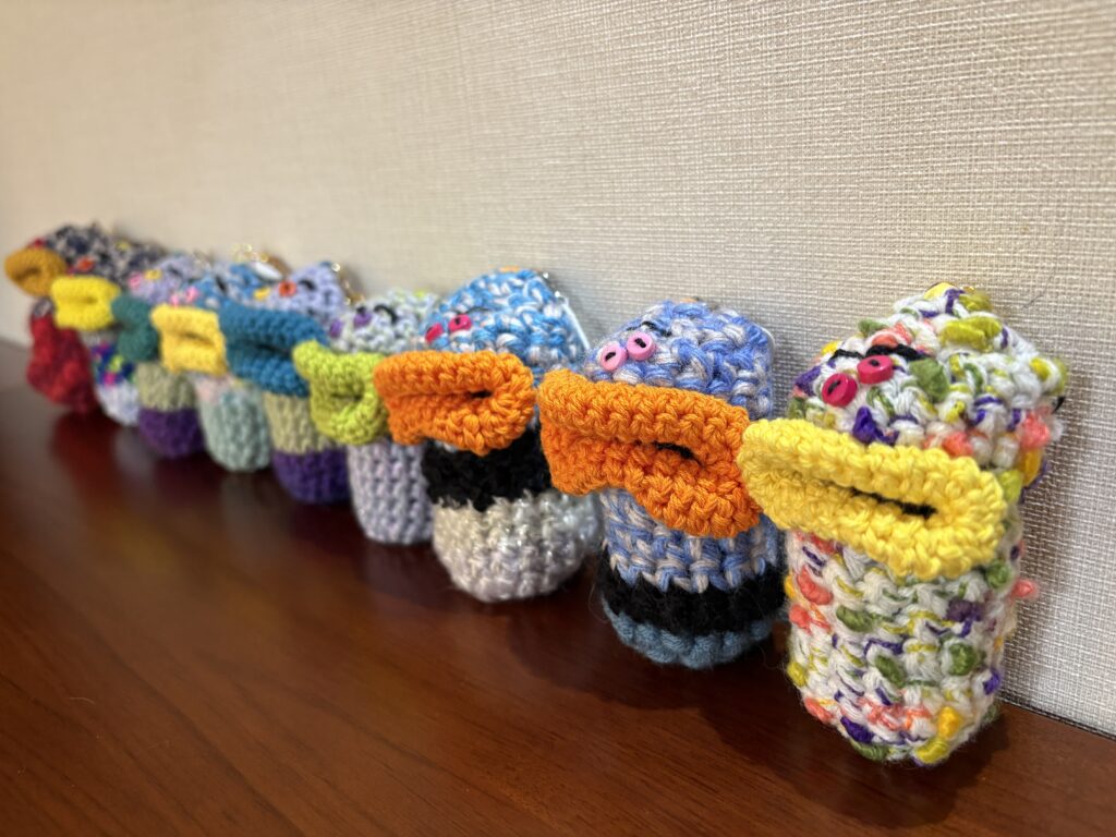以前から登場している、私が編み編みしているパクパクリップケースですが、さらにバージョンアップして、パクパクマナー袋ホルダーになりました。