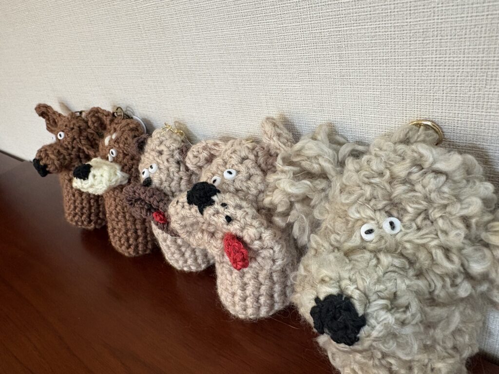 私が作りたい物だけを作りたい時に作りたいように作っているので、大きさ、形が不揃いですが、お散歩のお供にしてもいいよっていう変わり者集まれー!